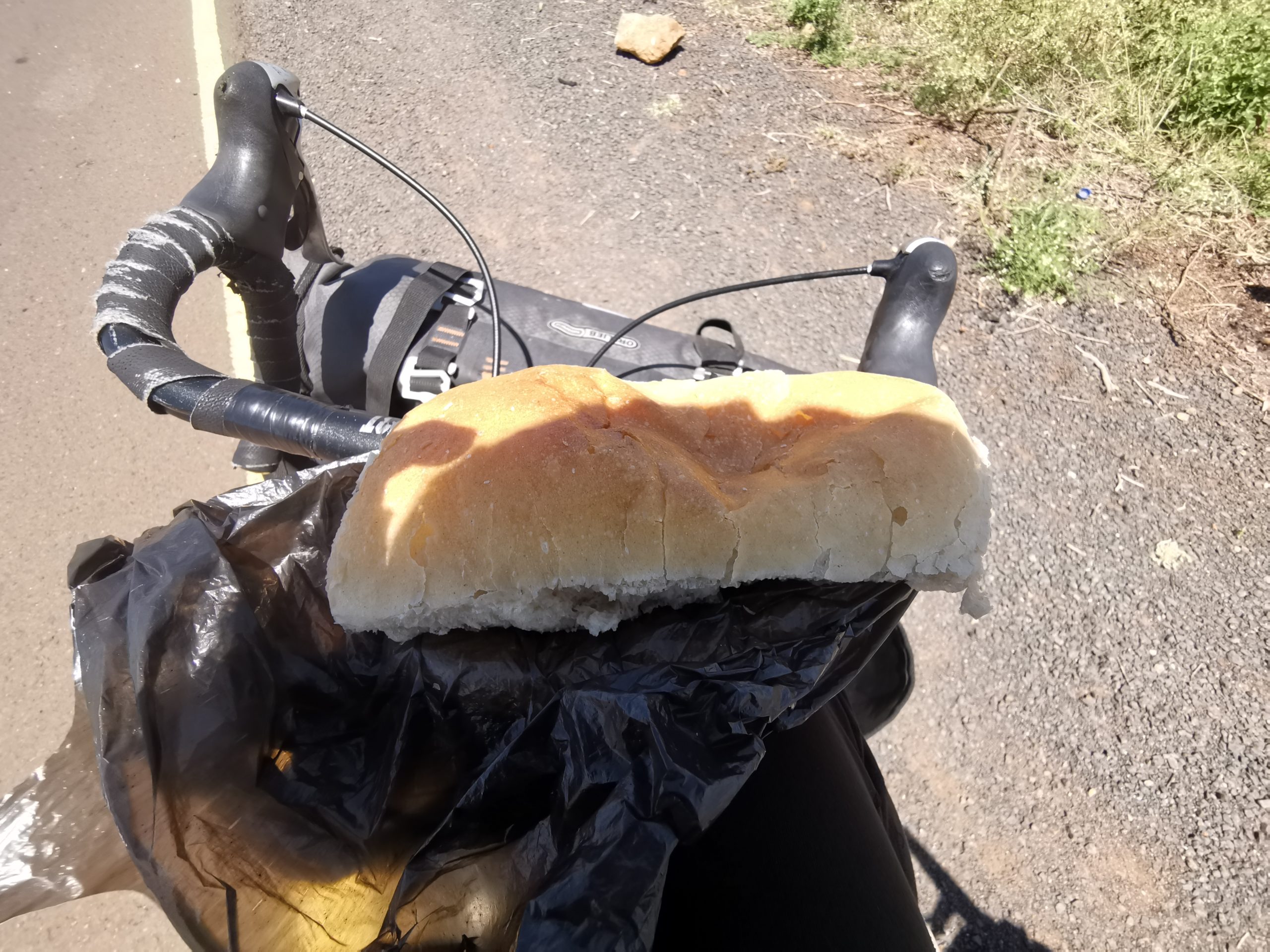 お昼過ぎ頃に小さな村を見つけてパンを購入。一つ17円。朝から何も食べていないのて腹ペコ。4個購入した。走りながら全部食べた。素朴な味だが鉄分が多いせいか若干血の味がする箇所もあるが、食感が良く美味しい。