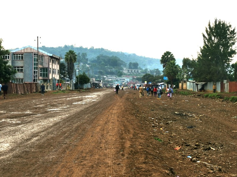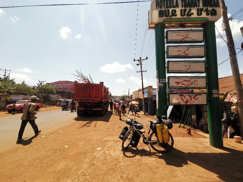 18頃にYirga Chefe(地図)に到着。もうすぐ暗くなってしまう。走るのを止めて宿を探した。