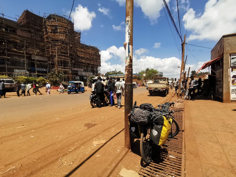 町中は雨に濡れた未舗装路だった。次第に自転車が泥まみれになっていた。