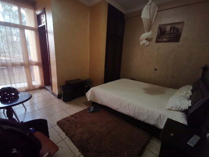 1泊1800円ほどでホットシャワー、電気あり、部屋も清潔だったので、部屋にテントを張らなかった。