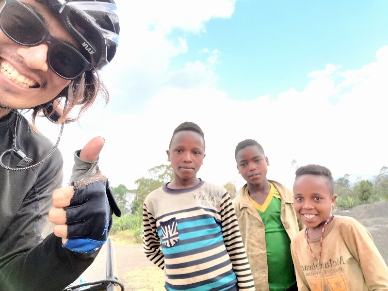 どうしても滑ってしまうので、地面に足を付けてゆっくり進んでいると、子供達が10人ほど集まってきて、僕の自転車を後ろから押してくれた。