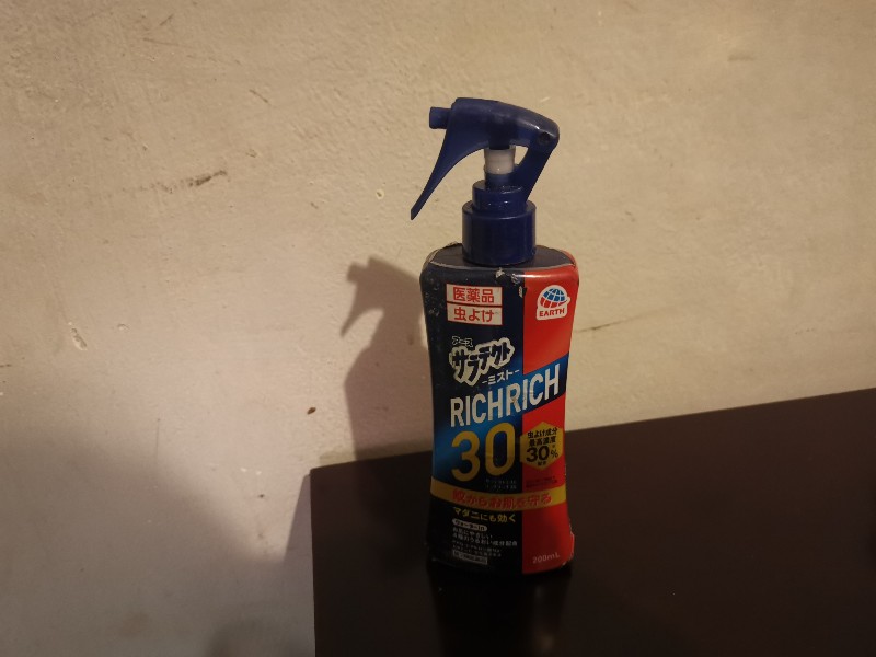 この方法で解決するのか不安だったが、その後は虫に刺されることなく眠ることが出来た。結構刺されているが眠れないほどの痒みではなかった。