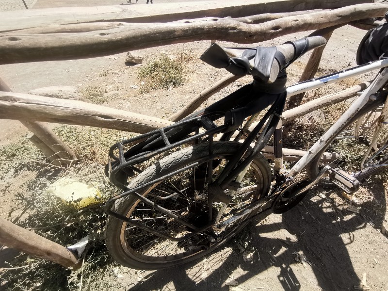 首都アジスアベバの自転車屋さんは品数が少なくシマノすら置いてない様子だったが、偶然にもリアキャリアが一つだけ売っていた。助かった。折れたリアキャリアと取り替えることにした。そして予備としてチューブ4個購入。