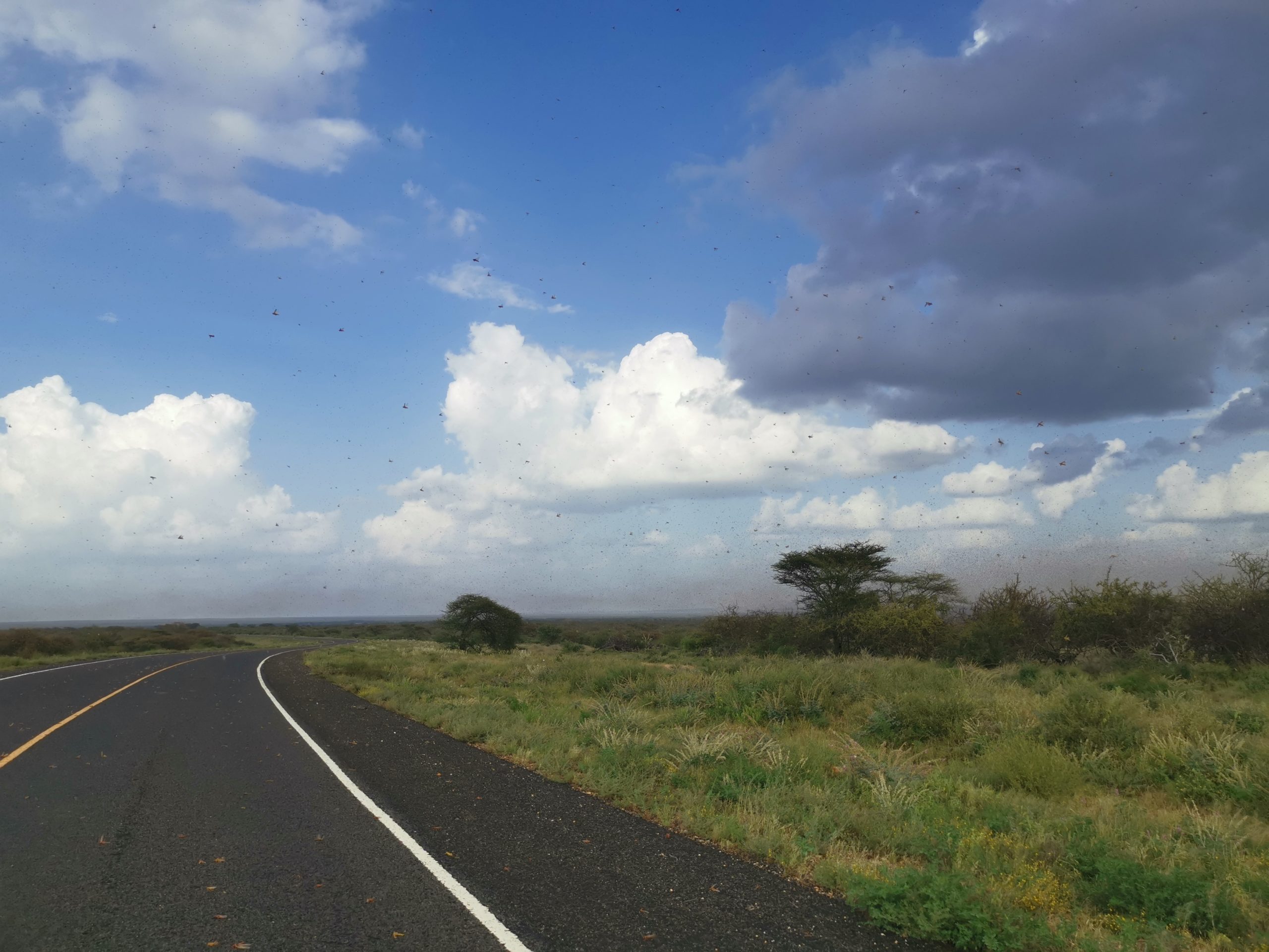 ニュースでもバッタが大量発生しているのを見て知っていたが、目の前にするとやはり気持ち悪い。空一面に広がる赤いバッタの群れに怖がりながら走った。