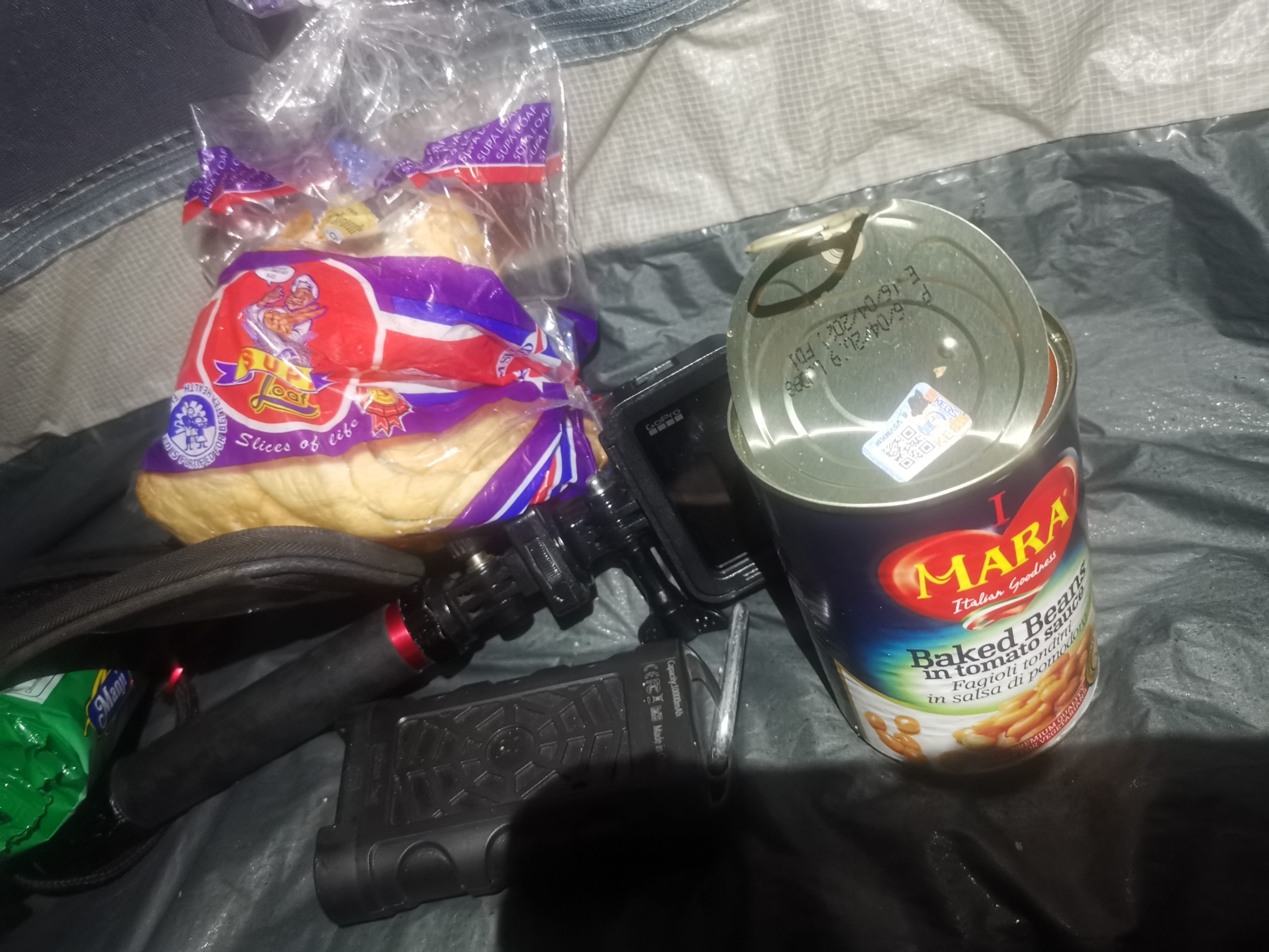 夕食はパンとトマトソースで煮た豆。