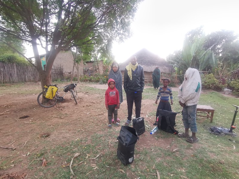 テントを畳んでから、了承をいただいて写真を撮った。僕が自転車に全ての荷物を載せ終わってお別れの挨拶をしようとしていると、男が「まだ寝てない。だからお金をくれ」と再び金銭の要求をされた。