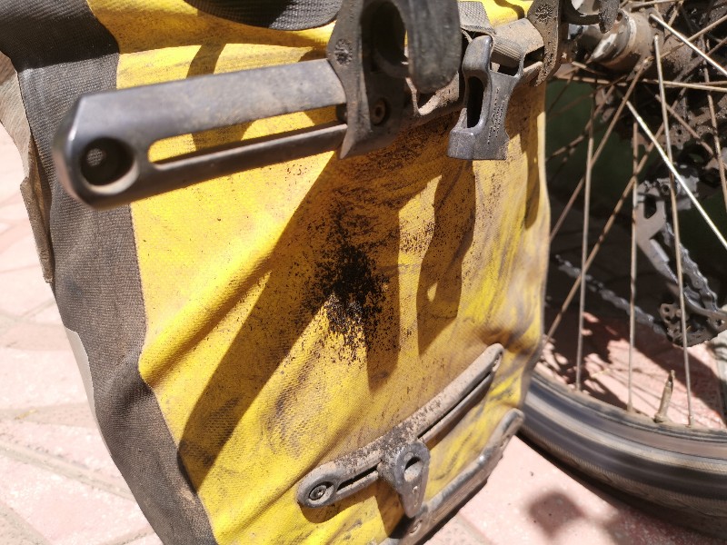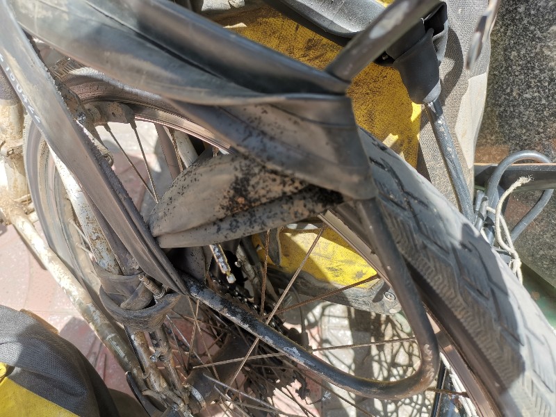 自転車はかろうじて走れるが、どうしても金具とタイヤが擦れてしまい、黒い粉が出ている。これではスピードも出ないし、足に負担が掛かる。