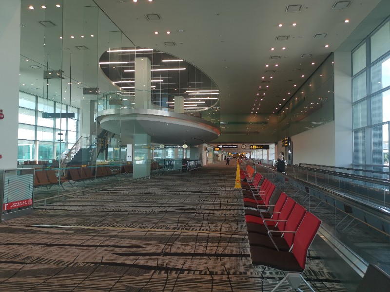 シンガポール空港内はところどころにサーモグラフィが設置されていて厳戒態勢。出国時に喉元の温度だけ図るアフリカと比べると大違いでした。