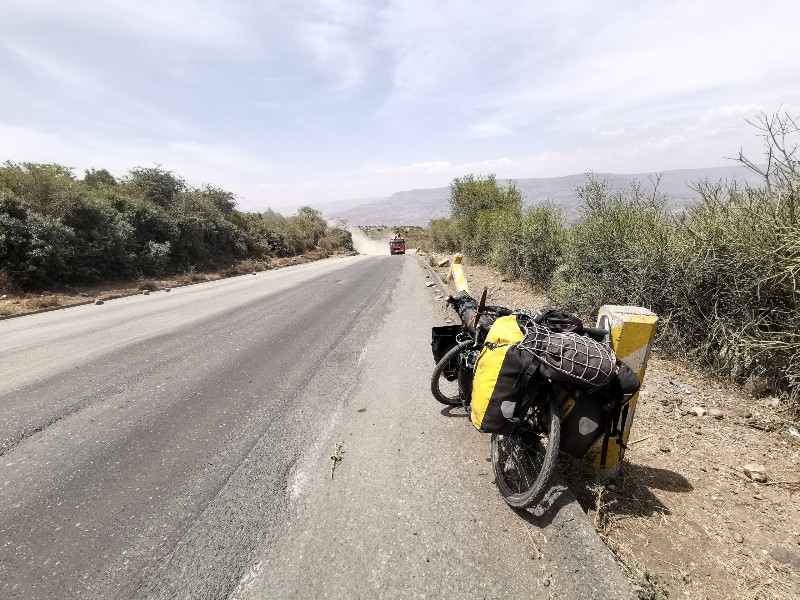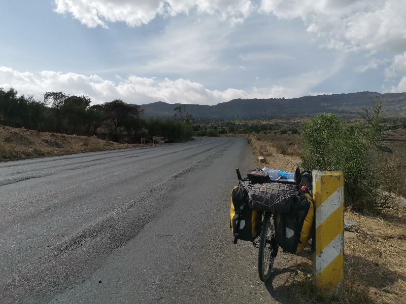 当初は110km先のデブレマルコス(地図)を目標に走ろうとしていたのだが、遅れた出発となったので、45km先のDejen(地図)を目標に走り始めた。