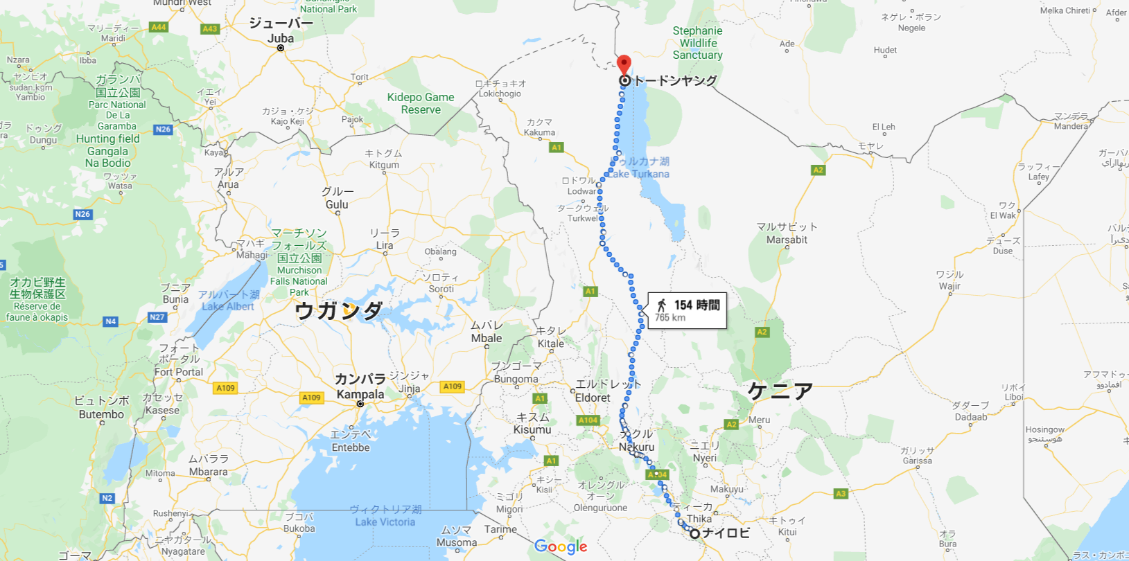 ナニュキ(地図)から出ると、サファリの真ん中を通る道があります。沢山の野生動物が見れるらしいです。このルートを実際に走った日本人の情報はネットには無いが、難易度は難しいと聞いてやる気になっているところ。しかし今、自転車の状態も悪くてどうしようかと悩んでいます。エチオピアの首都までは1300km。およそ20日は掛かるだろう。一度バスか飛行機でナイロビに戻って自転車を整えた方が良い気もする。
