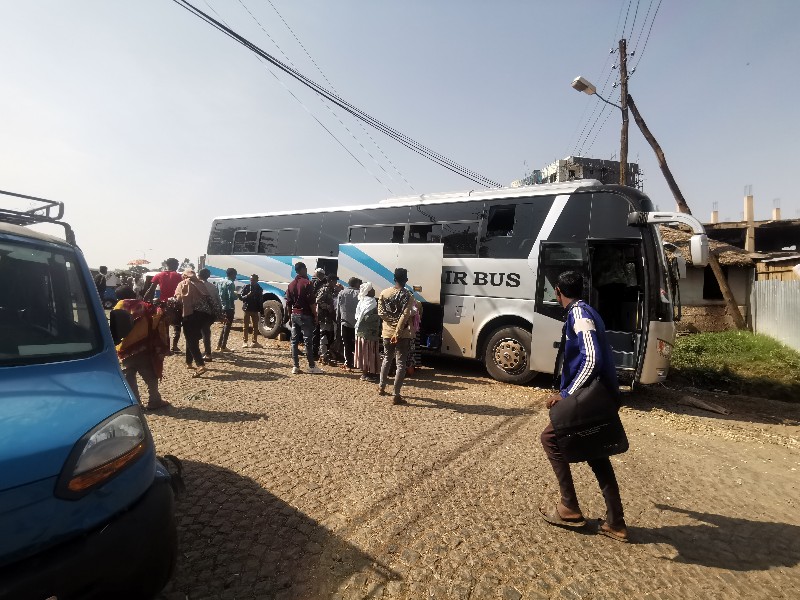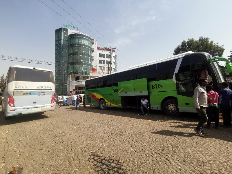 バス停に到着。アジスアベバ行きのバスは2台あって、どちらのバスだろうかと迷ったが、色々な人に聞いた結果、緑色のバスだと分かった。