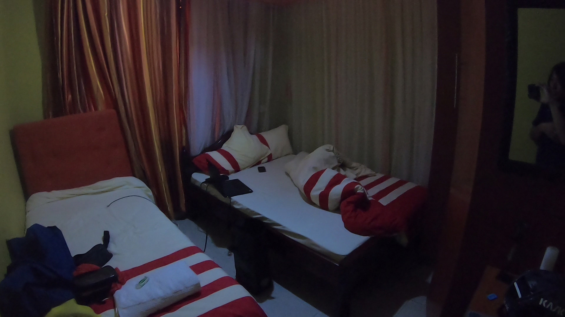 あれ、何かおかしい。さっきまでの雰囲気とは違う。GoogleMap上では、この付近に予約しておいた宿があるのだが…。明らかに町の雰囲気がおかしい。上の写真の場所は比較的安心だったのでカメラを回してみたが、他の場所は非常に危なそうだった。一番驚いたのが道路脇に大量のゴミが山のように固められていた。ゴミ山は道路に何個もあり、異常な匂いを発している。できるだけ呼吸しないように走った。アフリカでも初めて見たゴミ山。