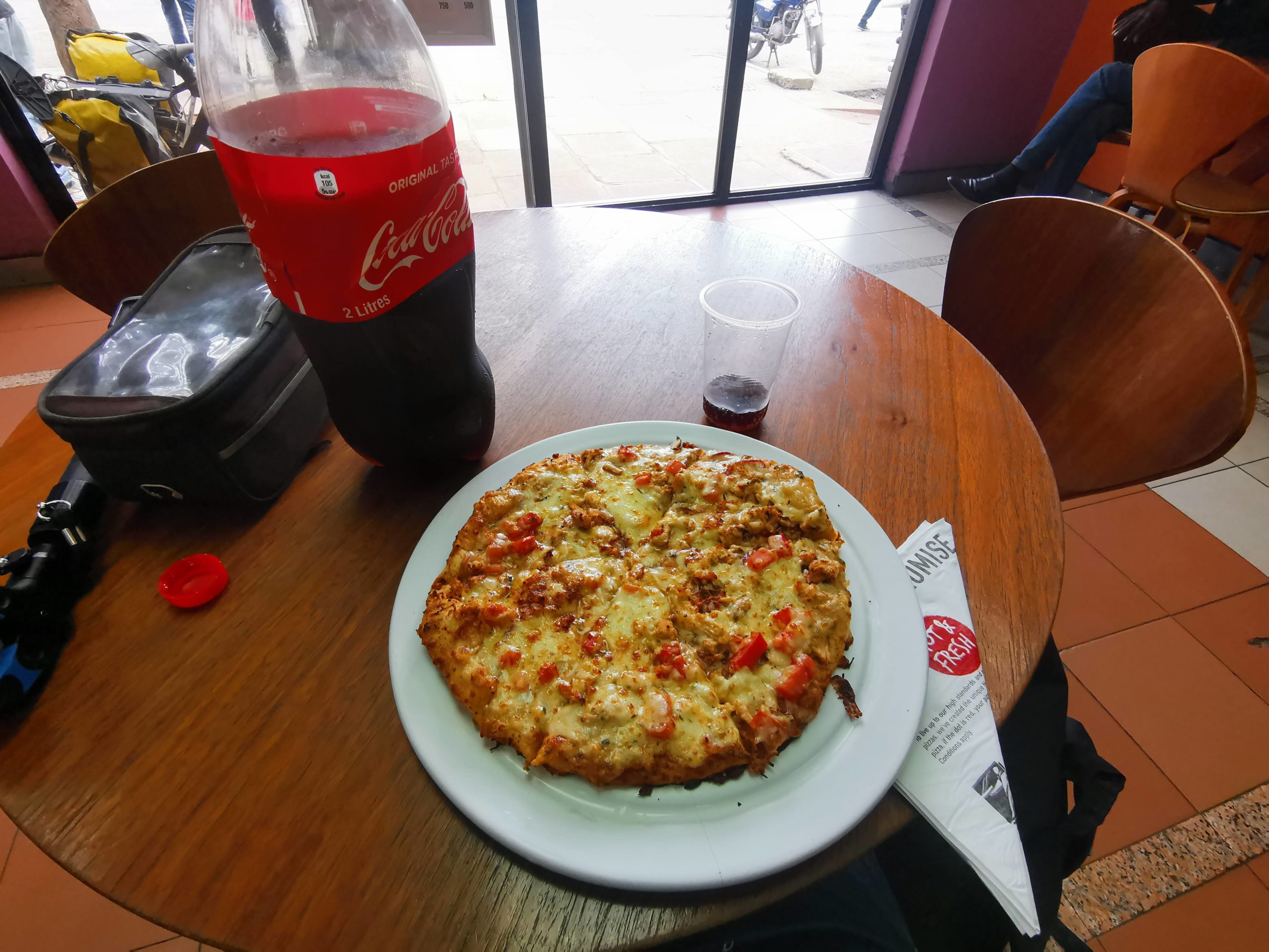 ピザ屋さんでピザを食べた。店の外に出て出発の準備をしていると女の子に話しかけられた。写真を撮ってほしいとのこと。