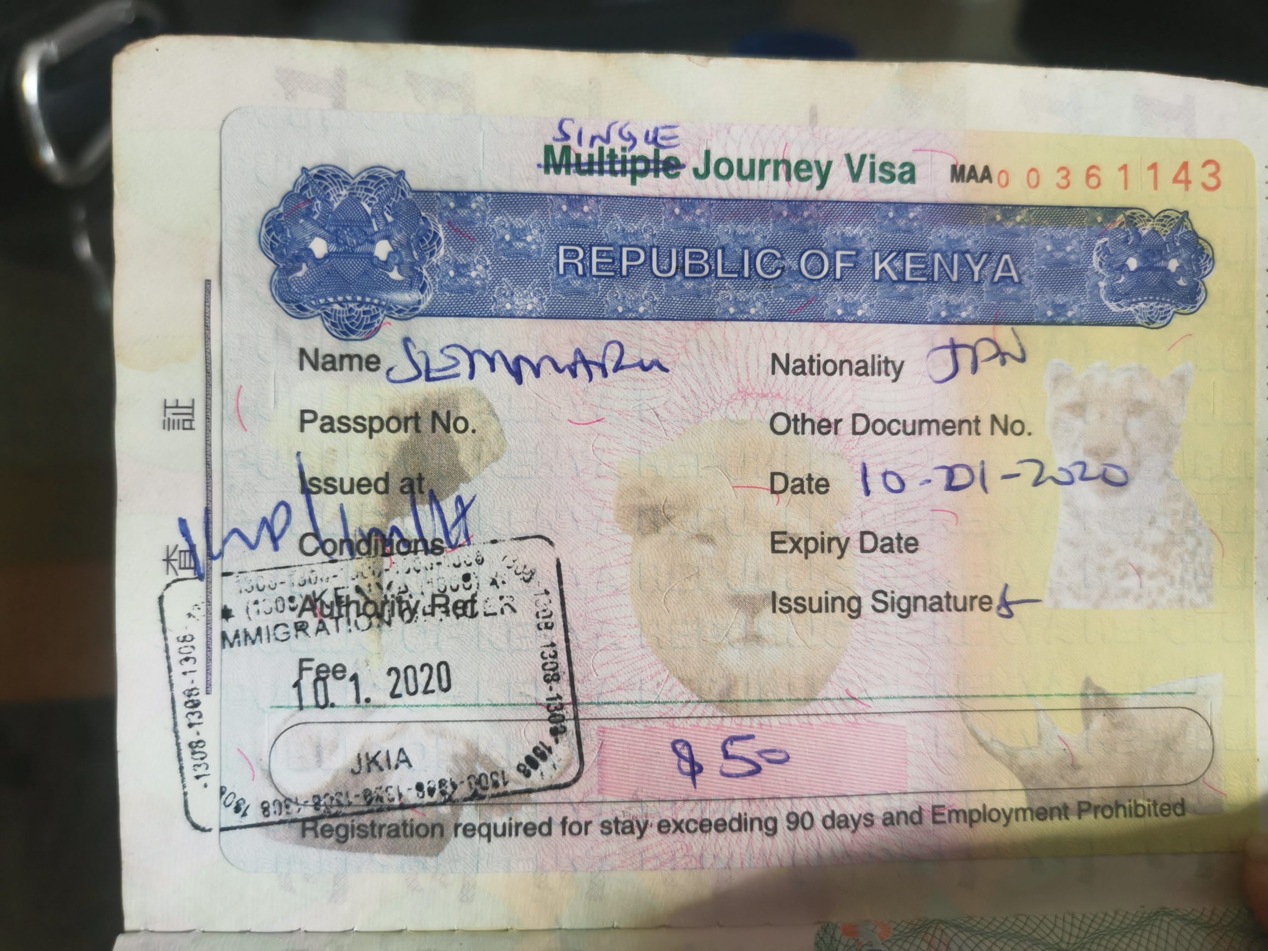 4週間前、自転車でケニアに入った時のビザは1回限りしか使えないとのこと。仕方なく50USD(5478円)を再度払って入国。その後、UberTaxiを使って自転車を預けてあるホテルへ戻ってきました。