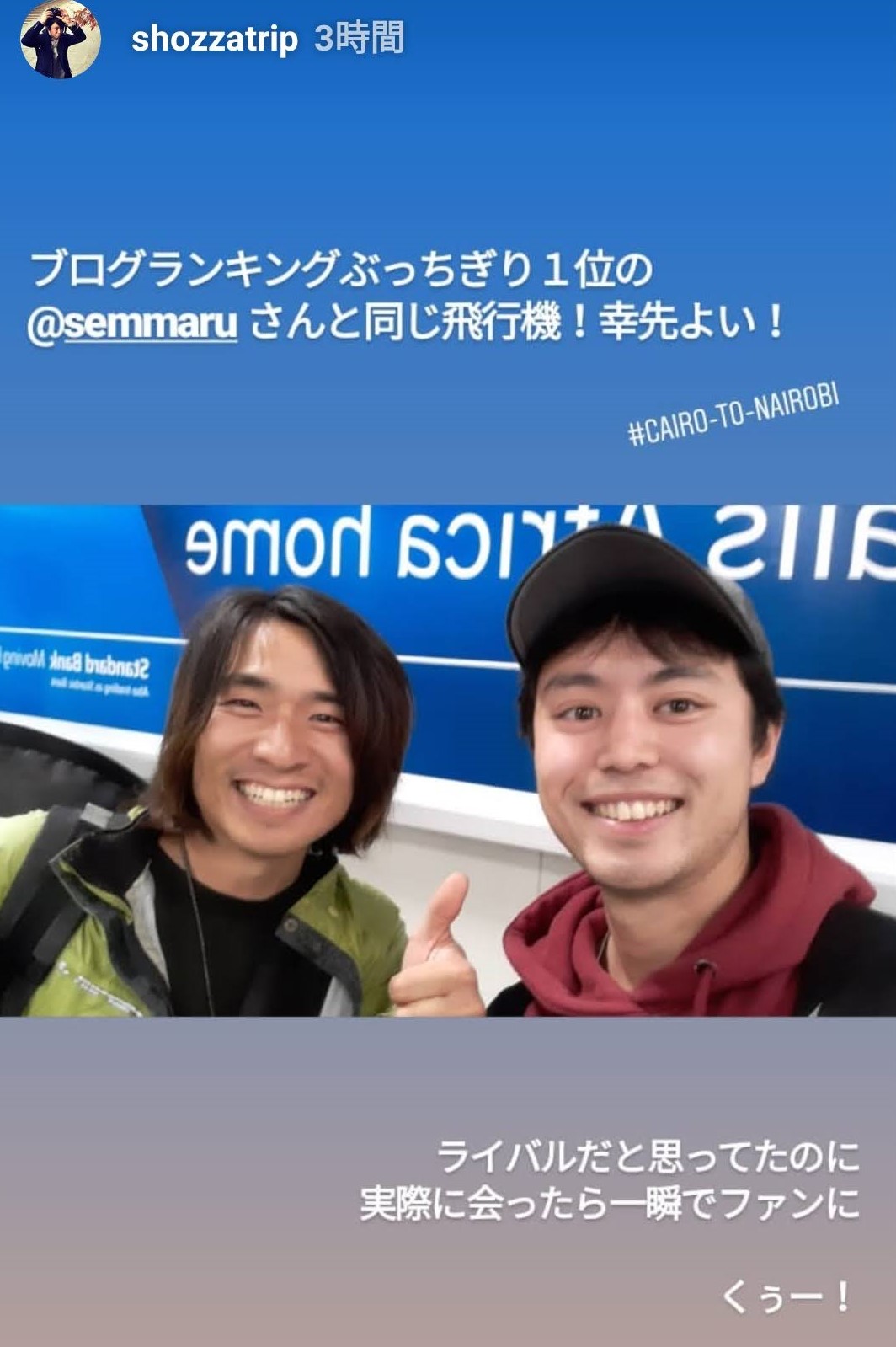 偶然にも同じ飛行機に乗っていたそうです!このような出会いは嬉しくなりますね!彼は既に2年で70か国ほど旅されているそうで、このケニアで帰国予定だそうです。写真も上手く文章もしっかりしていて必見です。ブログはこちら➡ShozzaTrip