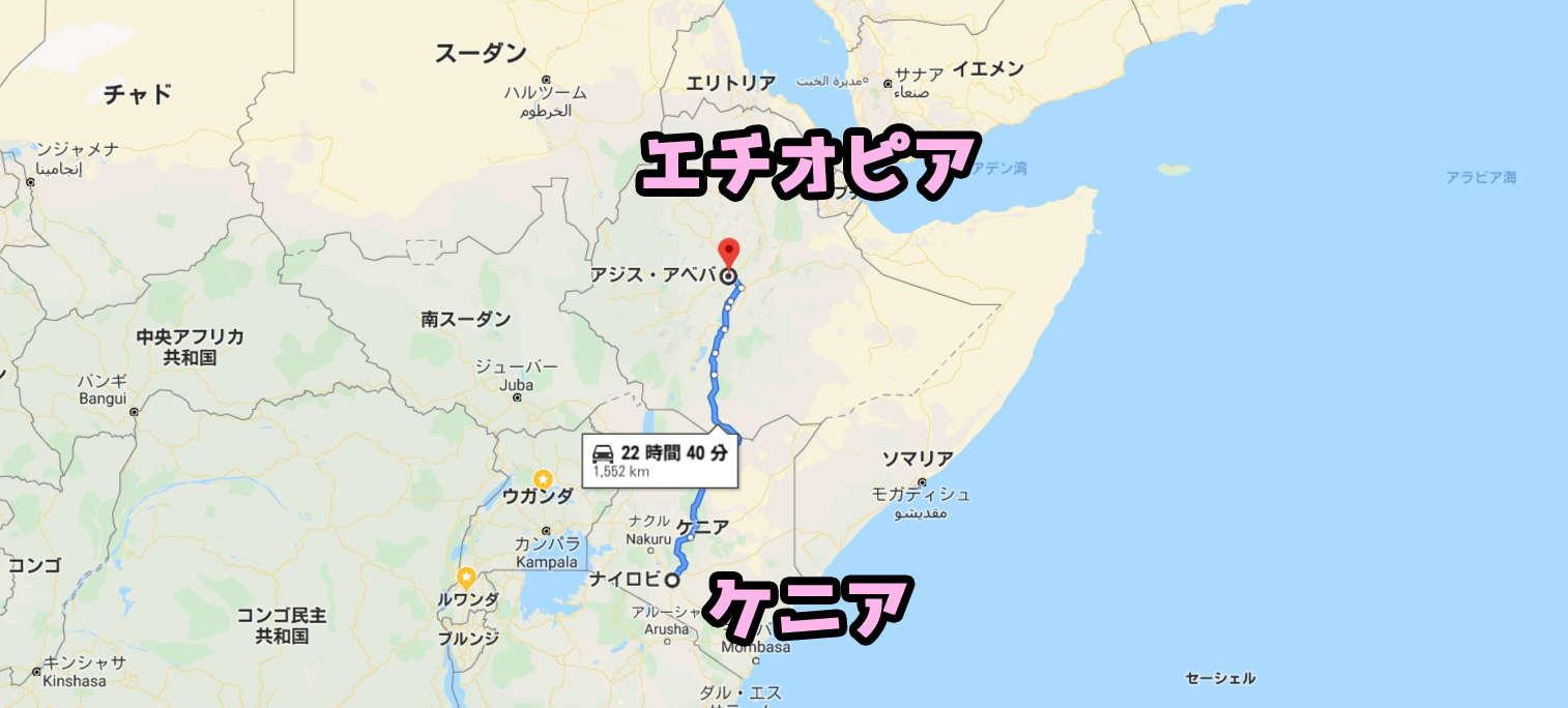 再び自転車旅が始まります。今いるケニアの首都ナイロビから、当分の間はエチオピアの首都アジス・アベバを目指して走ります。距離はおよそ1552km。自転車で20日間走れば到着できるかなといったところ。