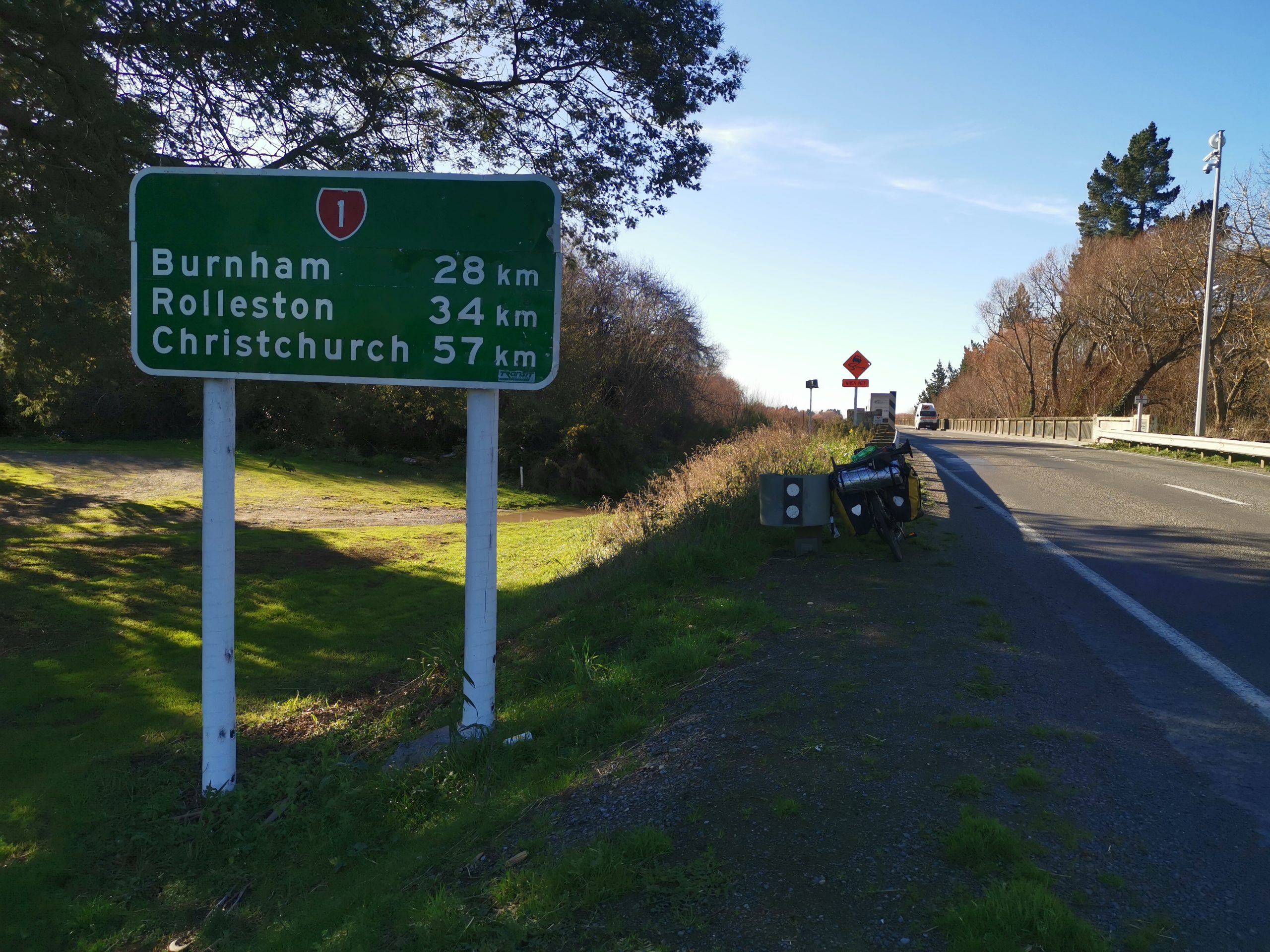 都会クライストチャーチ(地図)までの90kmを走ろうと思って出発したが、思っていたよりもペースが遅く、このままだと夜になってしまいそうだった。