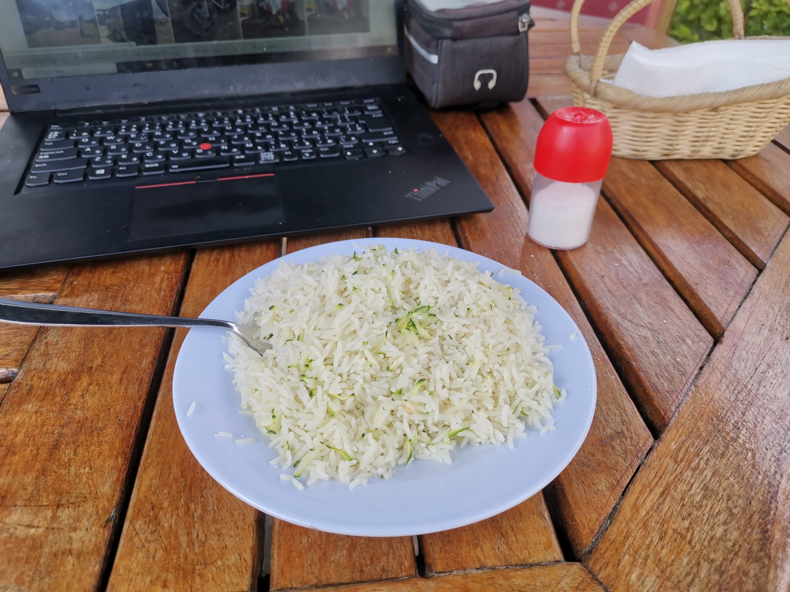 昼頃にライスを食べながらブログを書いた。細かく切ったキュウリが入っていた。値段は100円。