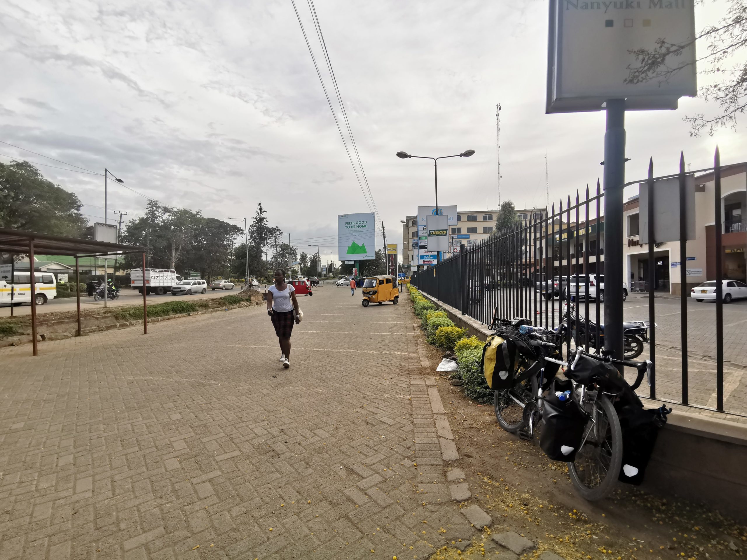 ナニュキ(地図)に到着。他の町とは違って雰囲気が落ち着いていた。街には白人の旅人さんもいた。山の他にもサファリがあるので観光地となっている様子。