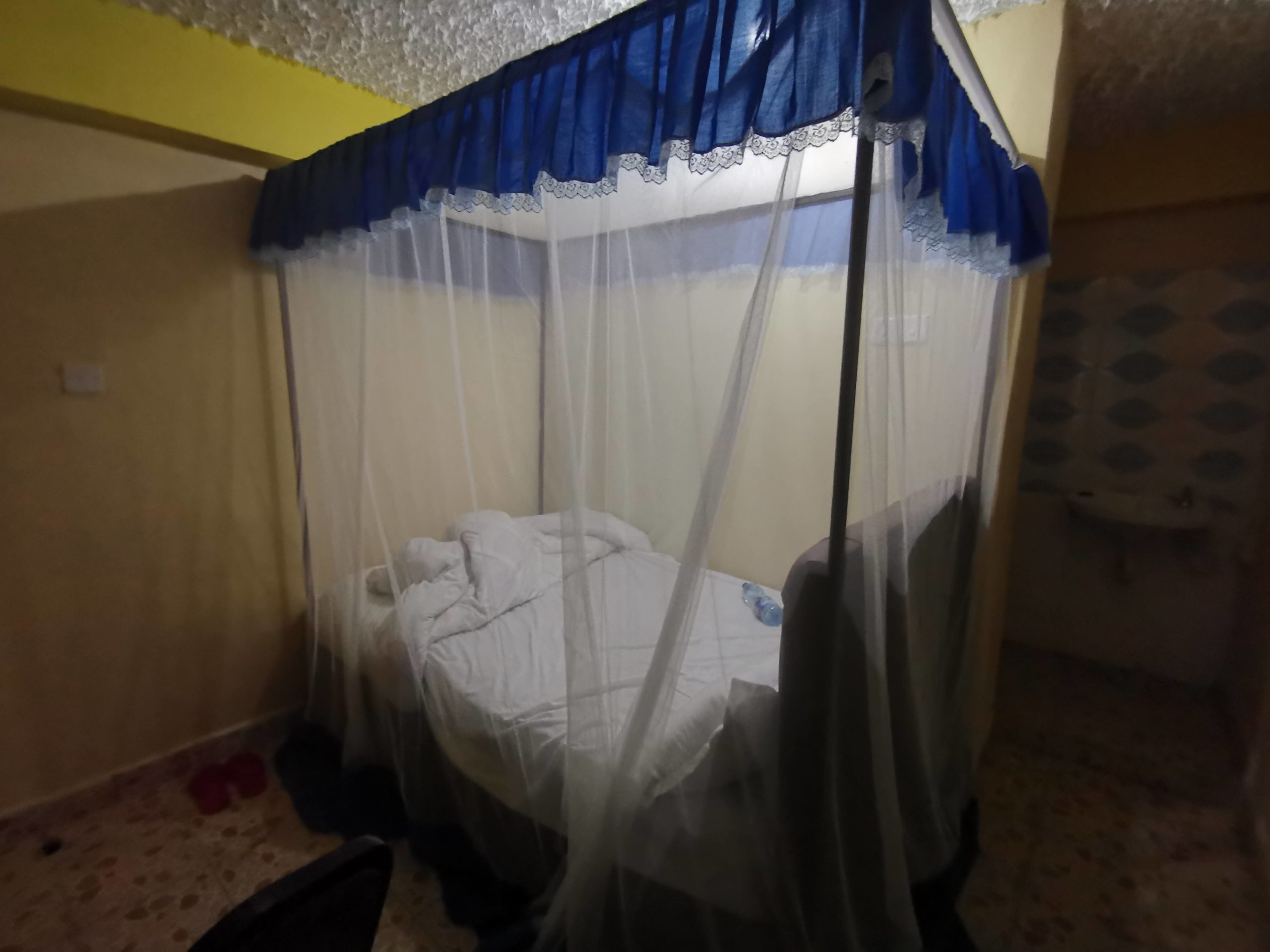 宿の名前はTown and Country Guesthouse Nanyuki(地図)。口コミでも高評価。1泊1600円。部屋は狭くて暗いがホットシャワー付き。部屋は4階なので蚊や虫もいない様子だった。
