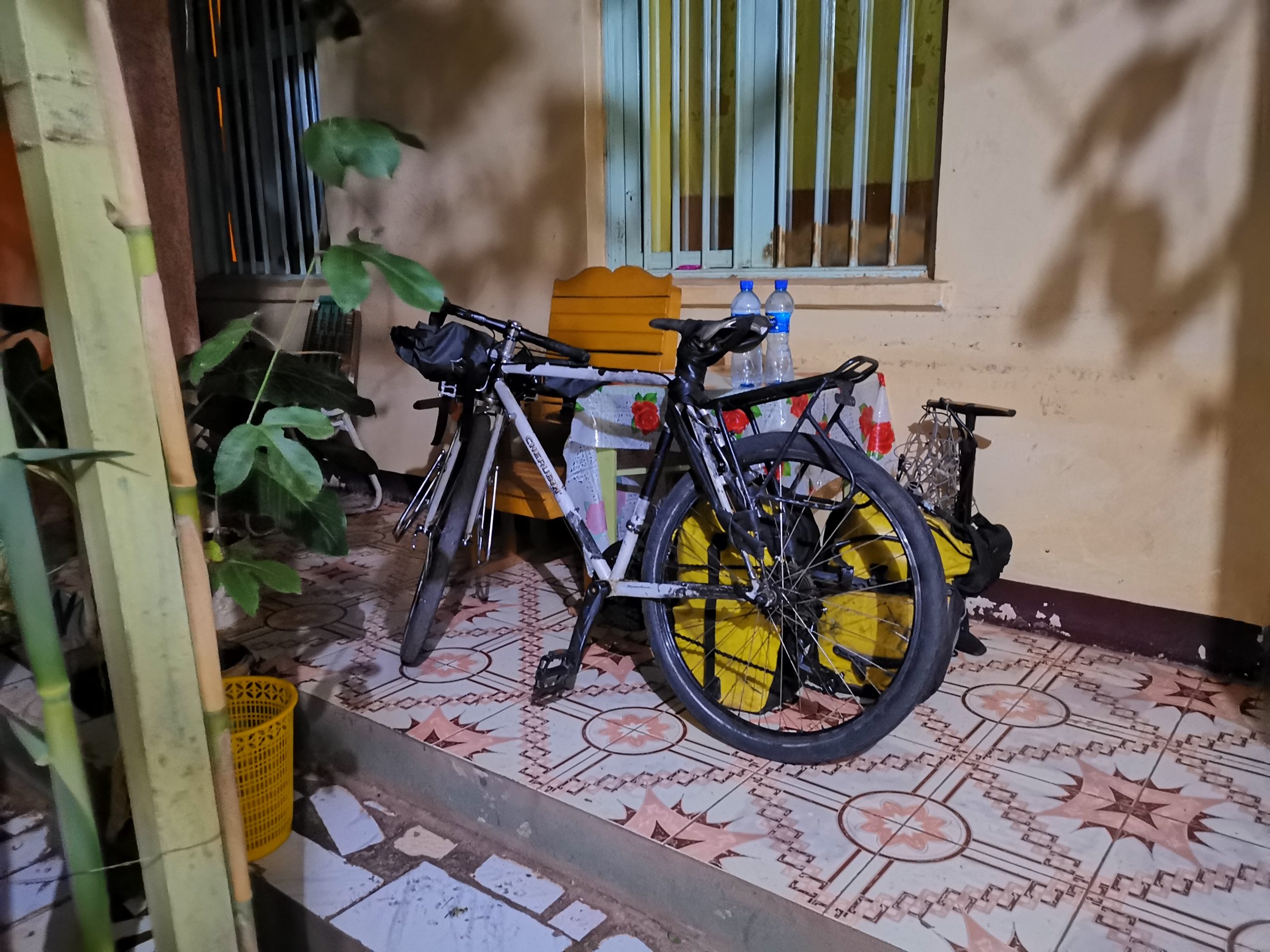 この宿の内庭は植物がたくさん植えられている。虫は多いのだろうが結構好き。道路からも離れているので昨日も静かでゆっくり眠れた。