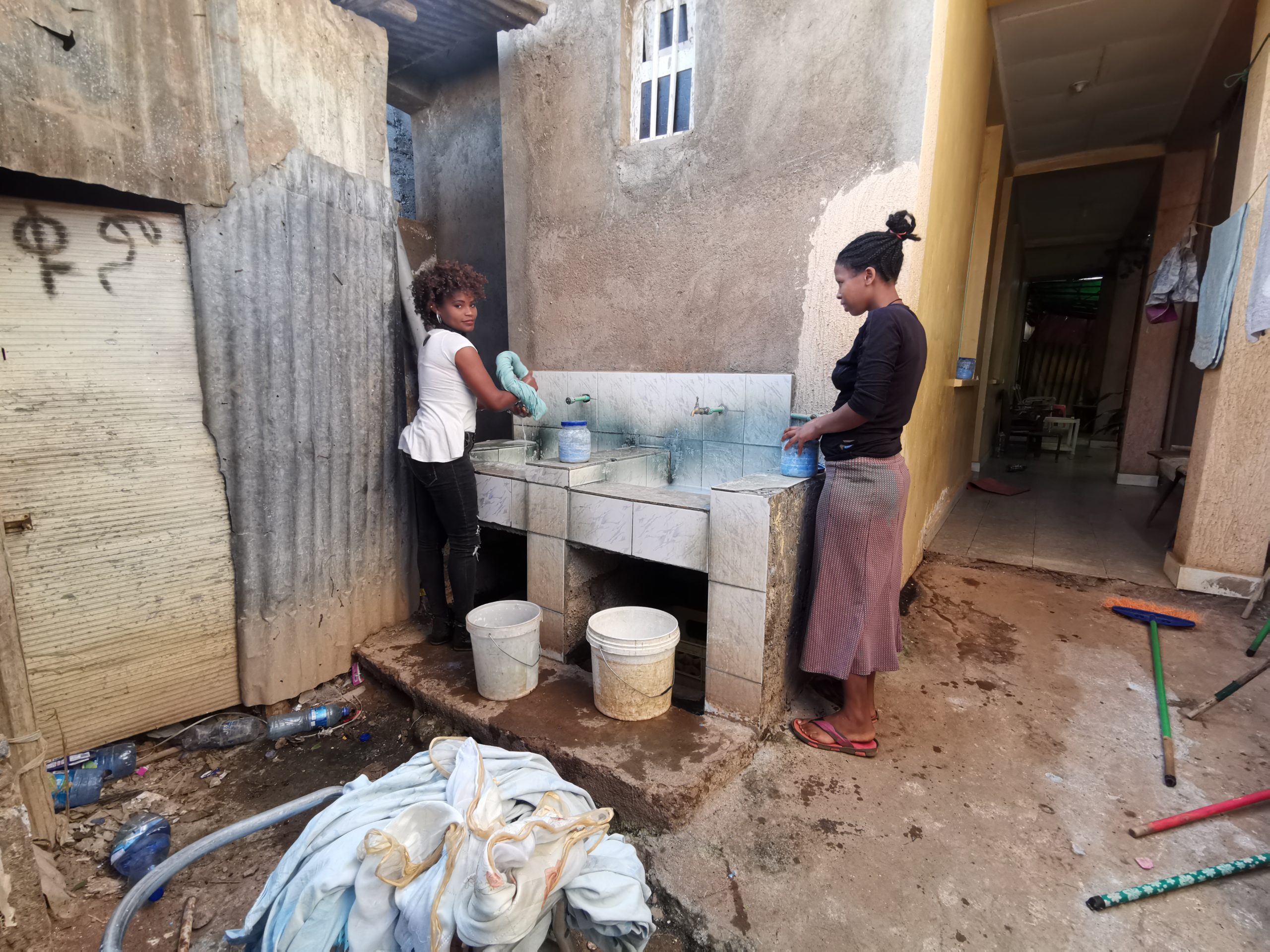 洗剤を染み込ませてゴシゴシ。ススギも不十分なまま、洗濯ヒモに衣類を掛けた。こんな状態でもありがたみを感じた。これでもアフリカでは良い方だと思う。