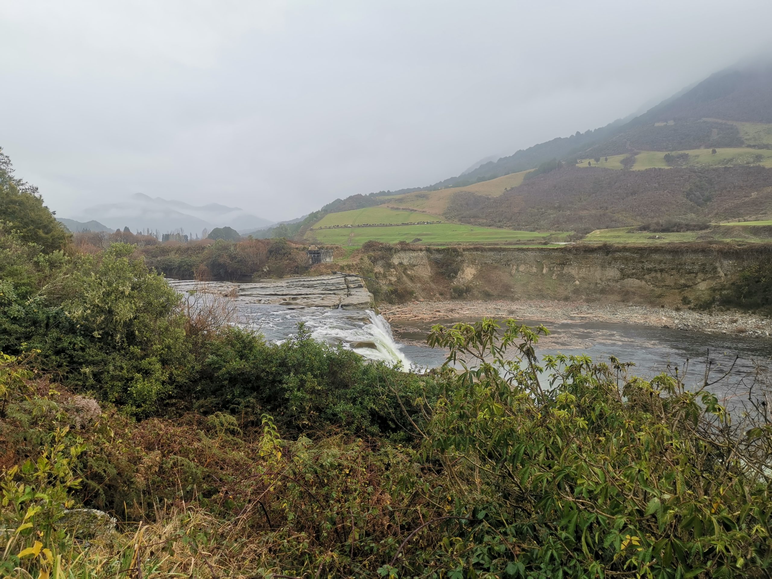 荷台のネジが外れて走行不能になるというアクシデントがありつつも順調に走っていた。道中にMaruia Falls Scenic Reserve(地図)という滝の観光スポットを見つけた。
