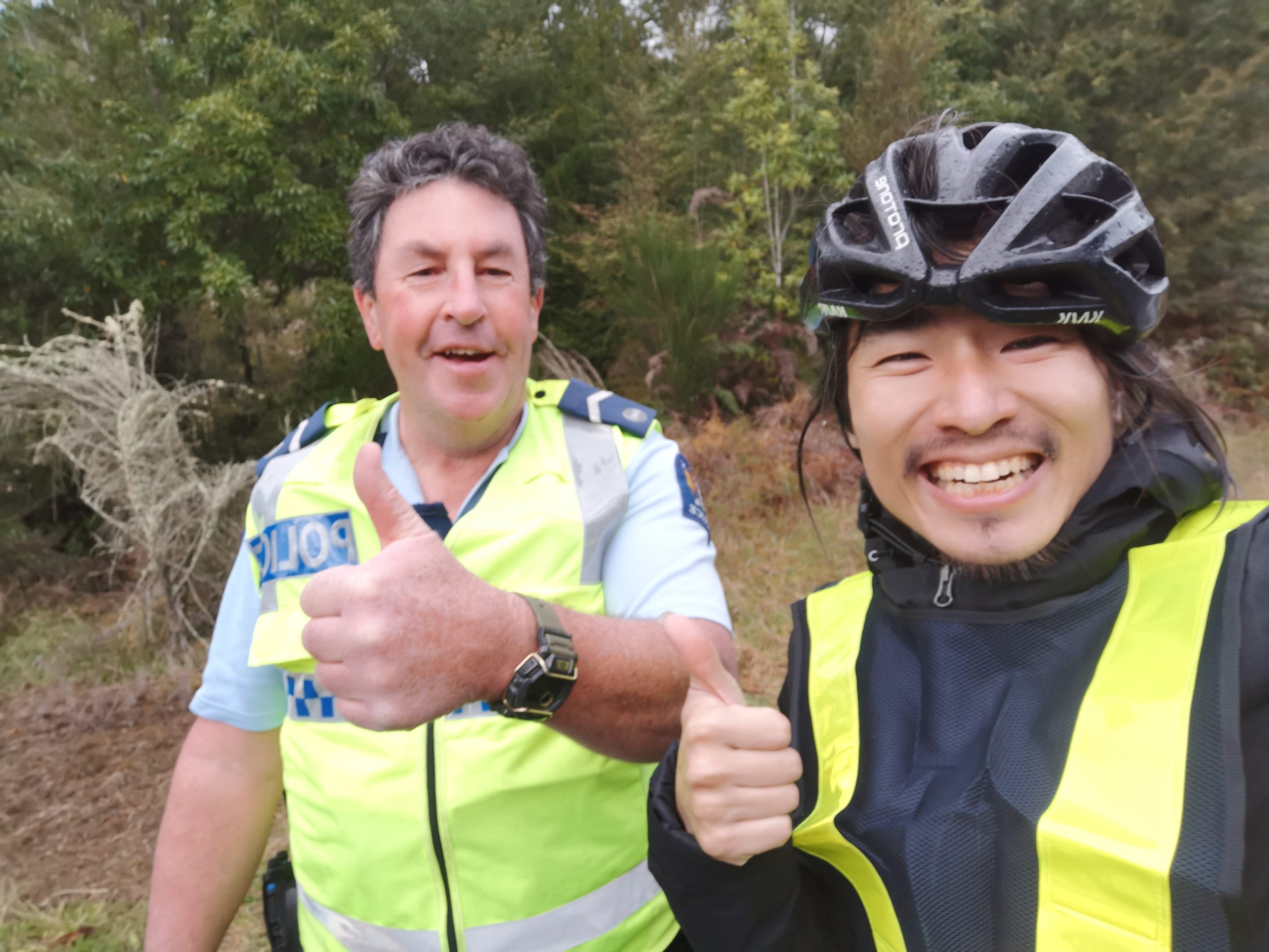 なんとニュージーランドの警察さんから自転車用ライト(前後)と反射付きの安全ベストをいただきました!