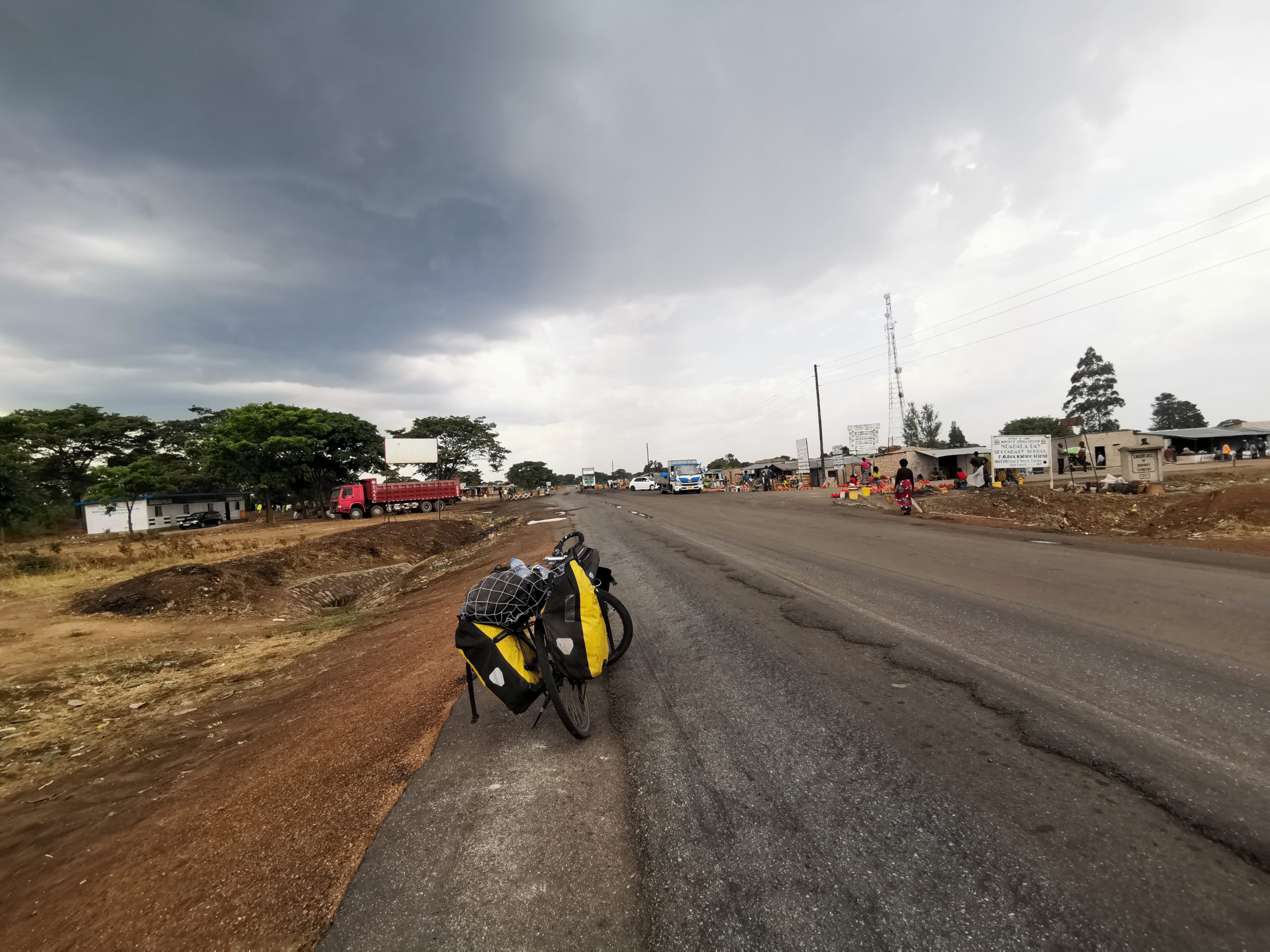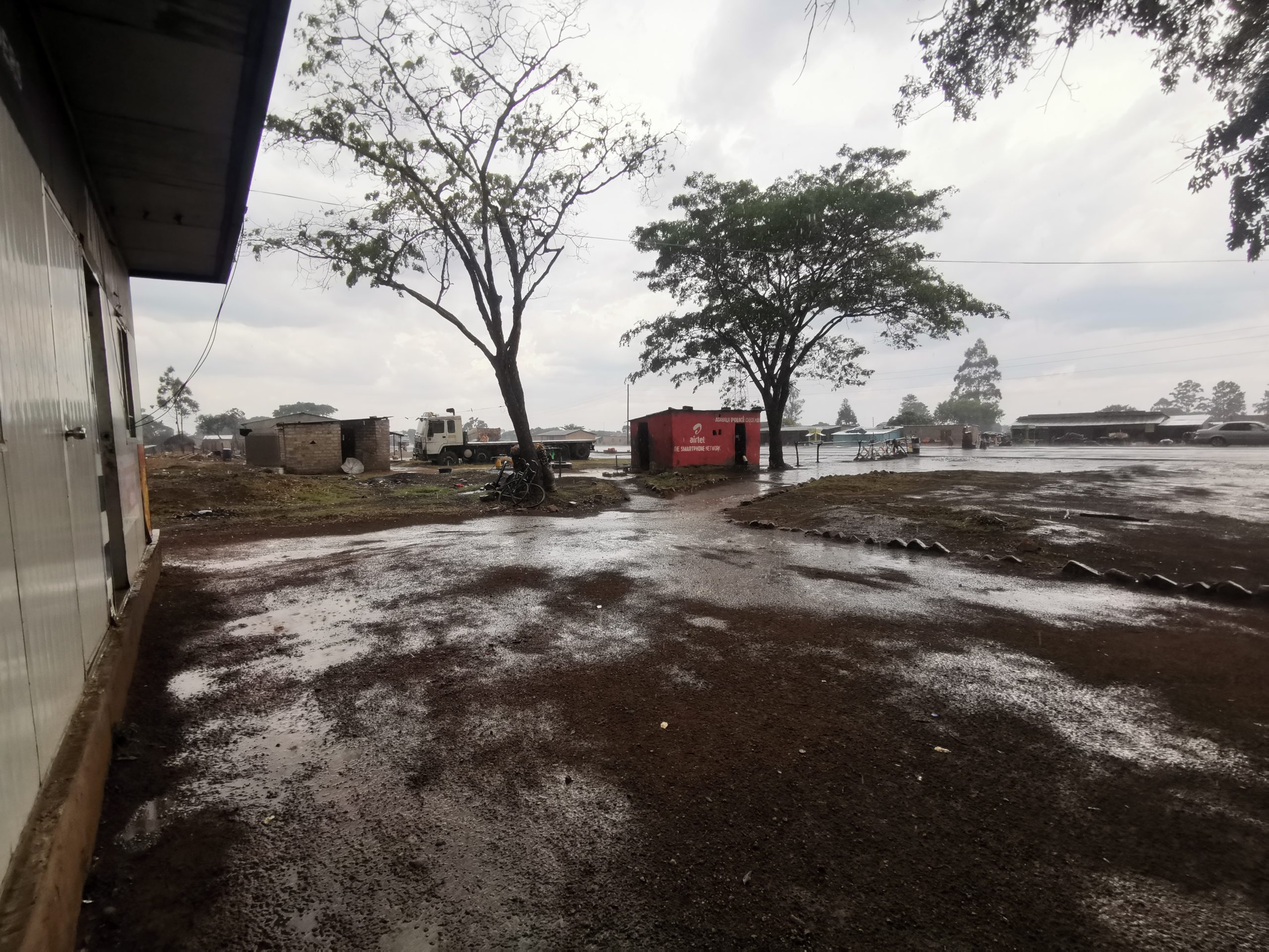 GoogleMapにも載っていない、名前もない村だろうか。お目当てのシマ(トウモロコシの料理)を探そうとしたが、それと同時に雷と共に猛烈な雨が降り出した。道の脇で野菜や果物を売っている露店達も急いで商品を片付けていた。残念だった。たまらなく空腹感のある僕は仕方なく、雨宿りできる場所を探した。