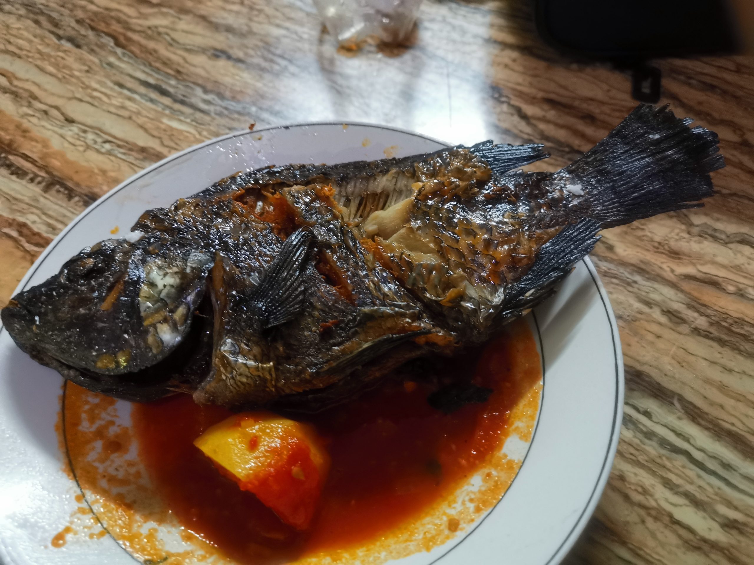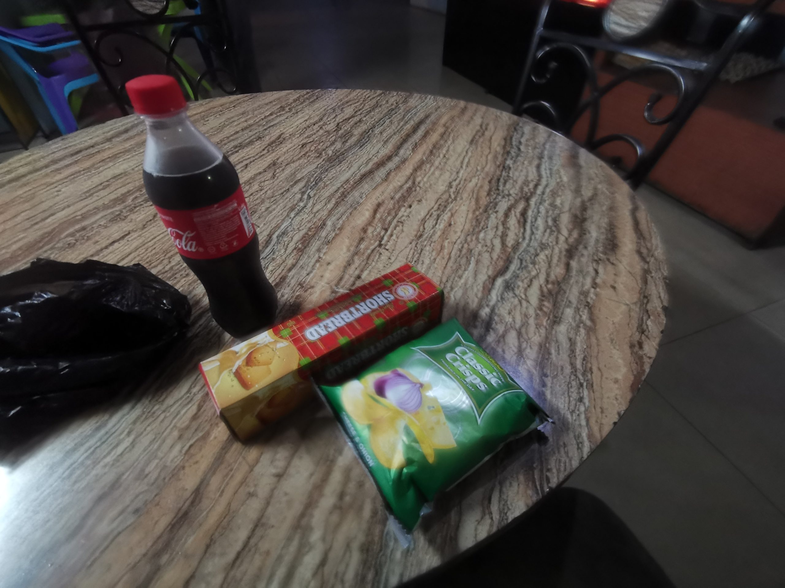シマ単体では注文できない様子で、ソーセージか魚か選べと言われたのだが結構迷った。衛生状況を考えて油でフライされた魚を注文した。魚は塩味の白身魚で美味しかった。シマは味がなくボソボソとした印象だった。メキシコのタマリンそっくりだなと思いながら全部完食した。