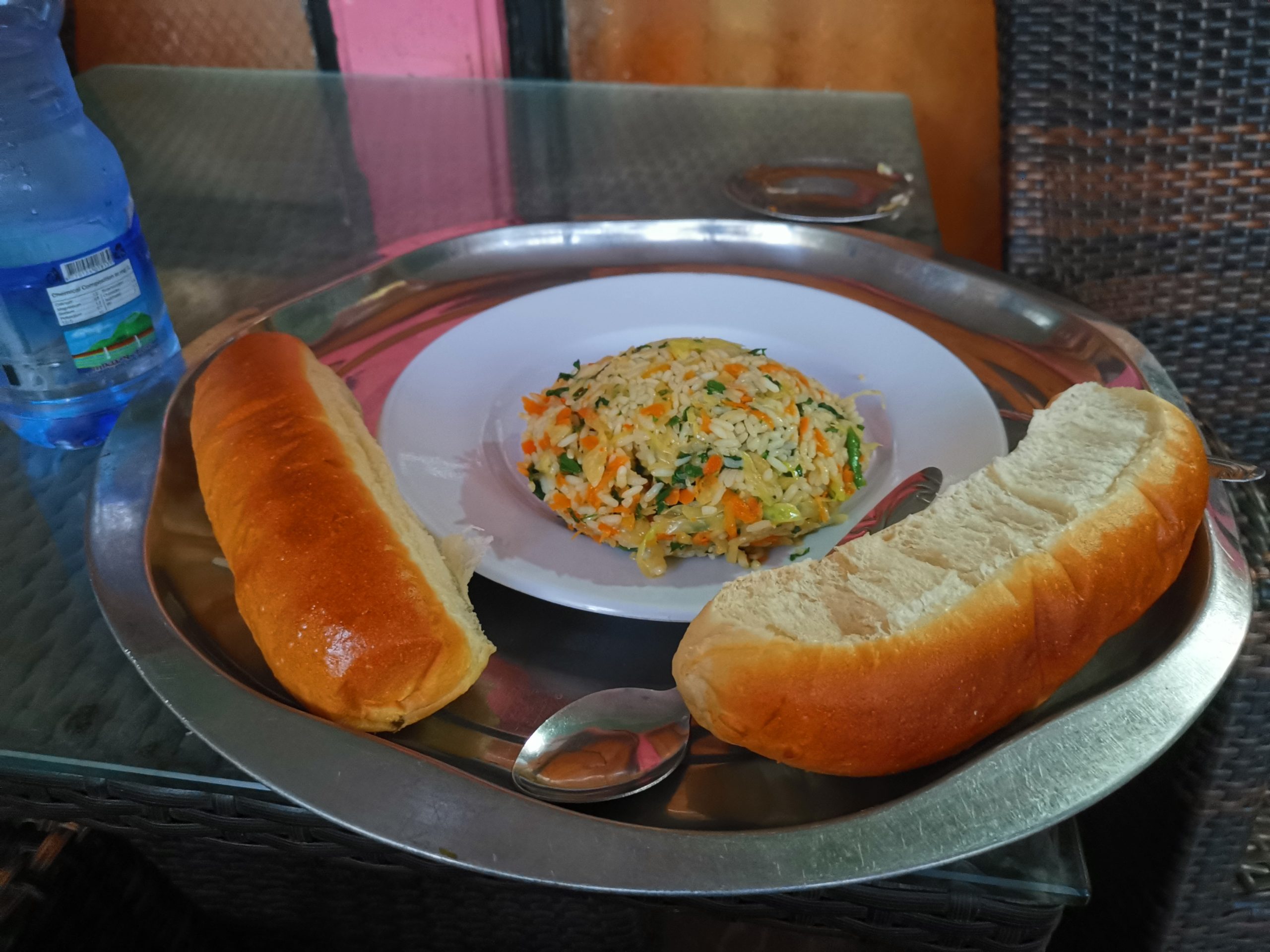 夕食は野菜とニンニクの入った焼き飯とパンを食べた。唐辛子を避けて食べたが美味しい。久々に料理を食べた気がした。夕食を食べたあと、SIMカードを買おうとしたが店の閉店時間で買えなかった。明日出直すことにした。