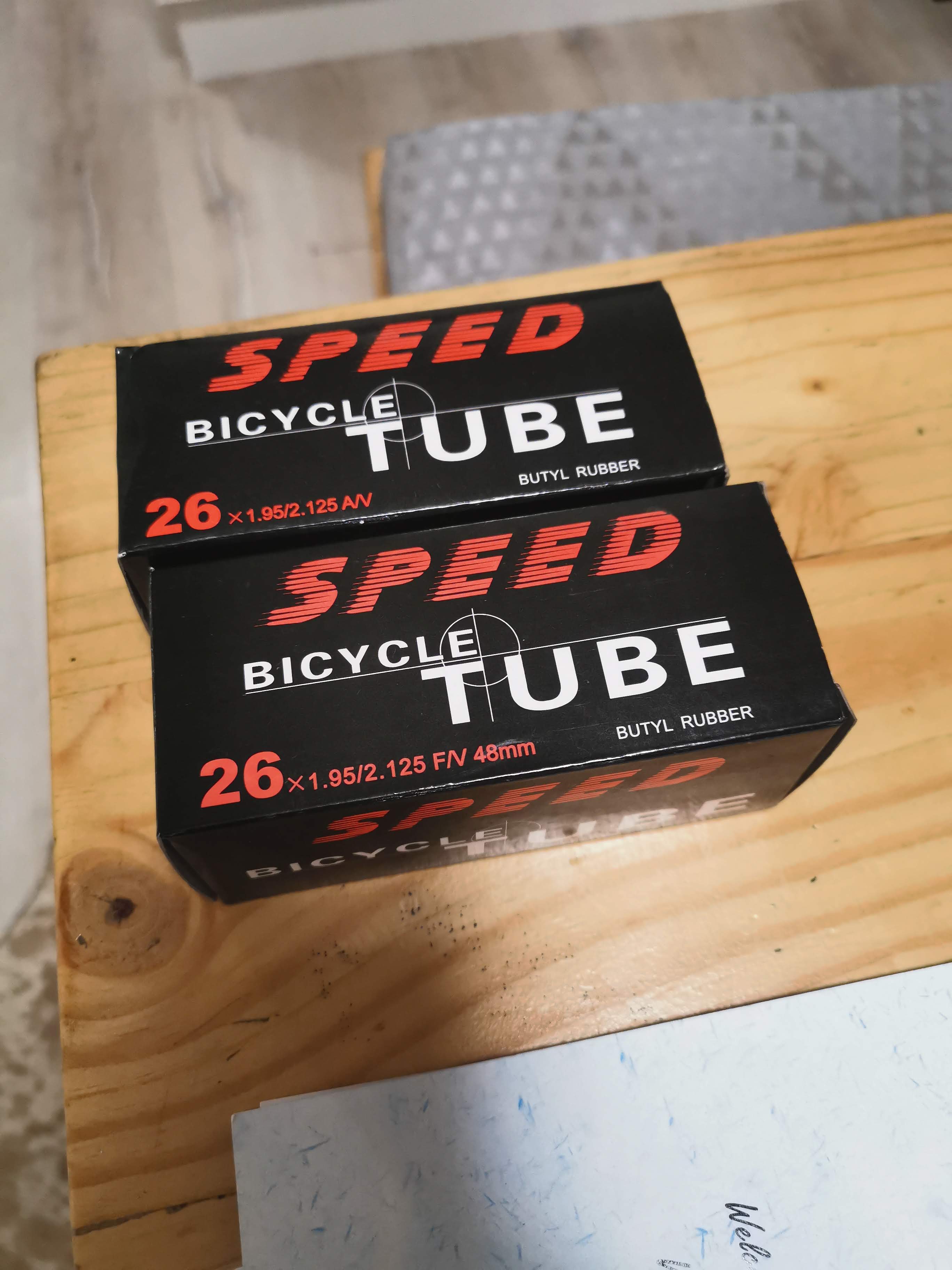 26サイズのチューブ。1.95から2.125と僕のタイヤからするとだいぶ太いが、これもこれまでの自転車旅の経験から分かることなのだが、問題なく使用できる。26サイズのチューブは店内に2つしかなかった。マウンテンバイク用の商品が多かった。