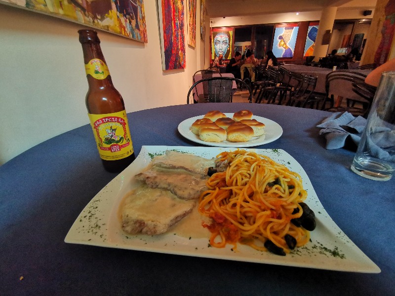 チーズソースの掛かったステーキ、ピカソという名前のピリ辛なトマトスパゲッティを注文した。ビールも頂いた。日本時間では3月6日になっていた。