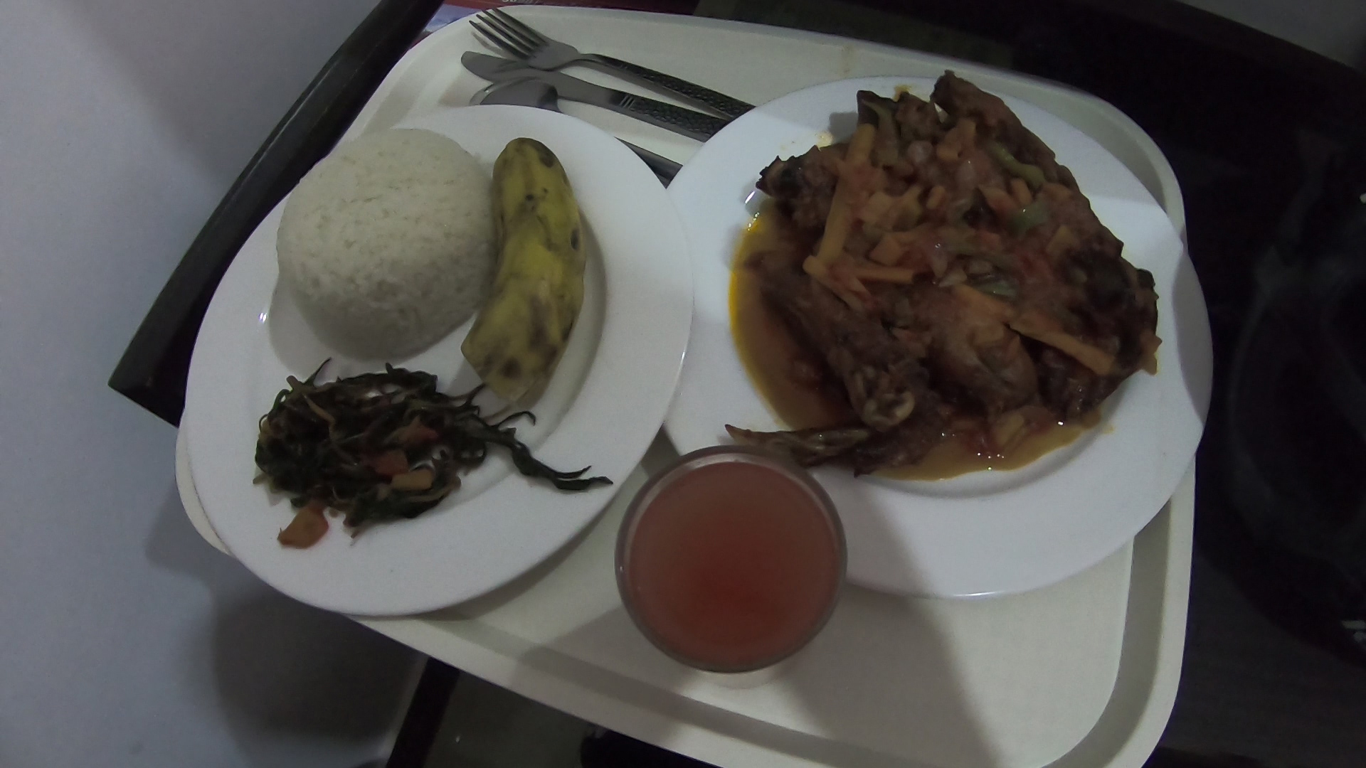 編集作業をしていたので外にでるより便利なホテルのルームサービスを注文した。白米、温野菜、バナナ、スパイシーな味付けのチキン。値段は500円ほど。美味しかった。これからライオンや象などの棲むサファリの近くを走ることになる。早く自転車で走りたいが、しばらくはドドマで休憩する。