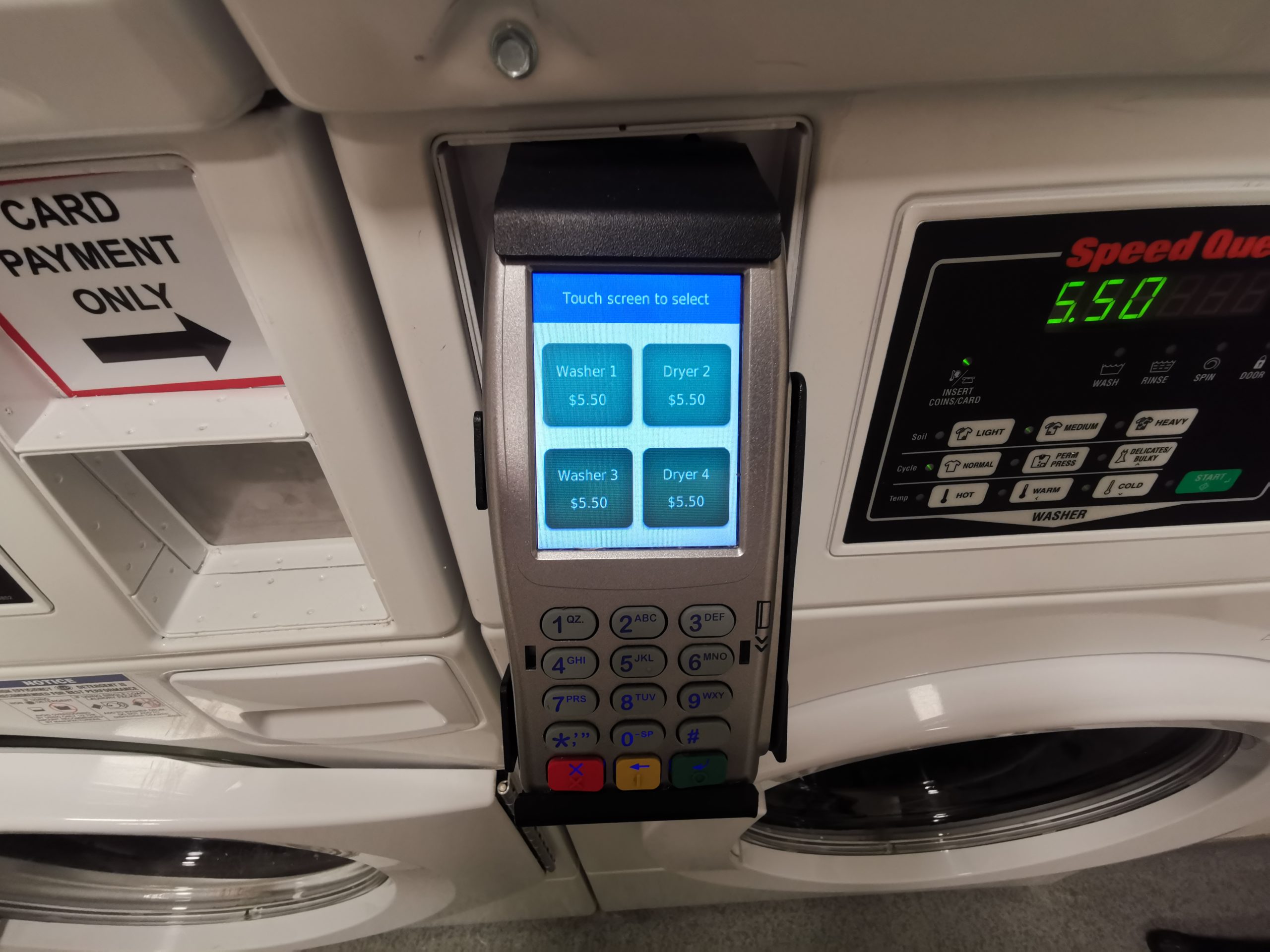 宿にある共同の洗濯機だけどクレジットカードで払えるようになってる。珍しくて写真に撮ってみた。