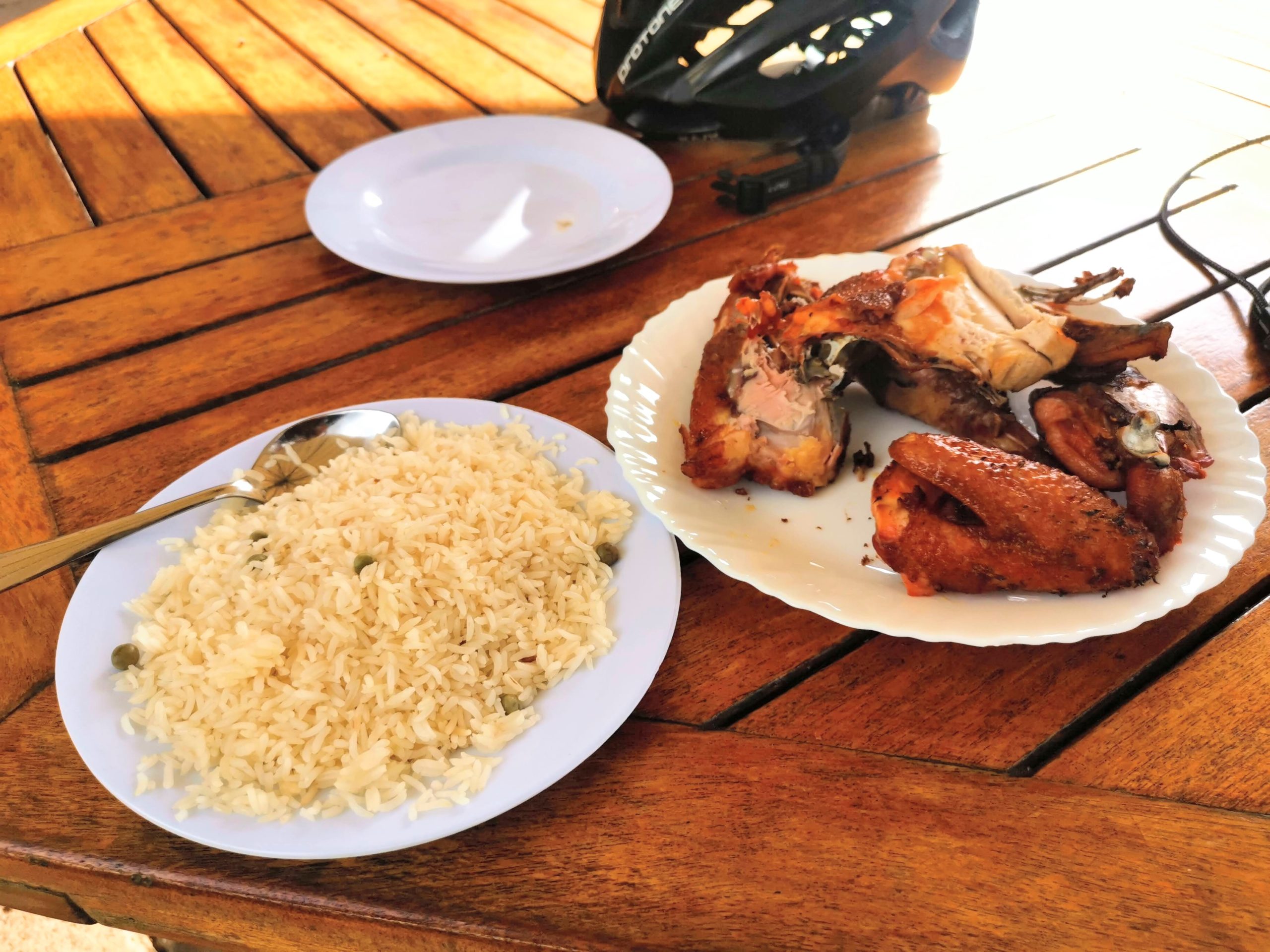 栄養のあるものを食べようと思いチキンとライスを多めに食べた。